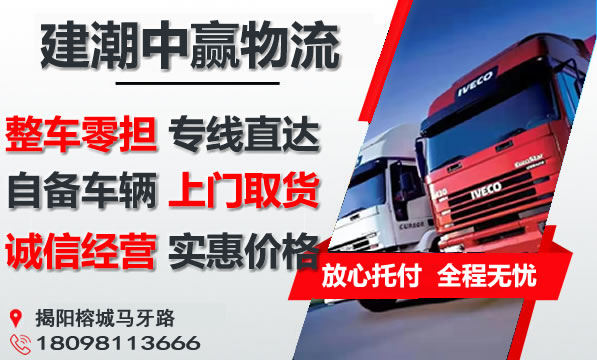 揭阳到福州物流专线是建潮中赢物流主营重点物流线路之一,提供4.2-17.5米整车包车运输,零担专线,可上门取货,量大免费提送货;揭阳到福州货运专线价格实惠,欢迎来电咨询。